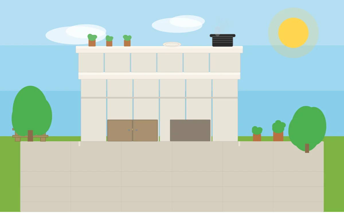 Le sol doit être plan, de niveau et stable. Une dalle béton existante convient parfaitement. Prévoyez au minimum 10 m² d’espace pour être à l’aise. Éloignez la construction de toute végétation susceptible de prendre feu, et tenez compte de la direction des vents dominants si vous installez un barbecue.